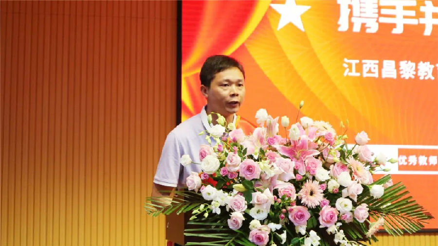 ▲宜春昌黎實驗學校優秀教師代表何斌發言