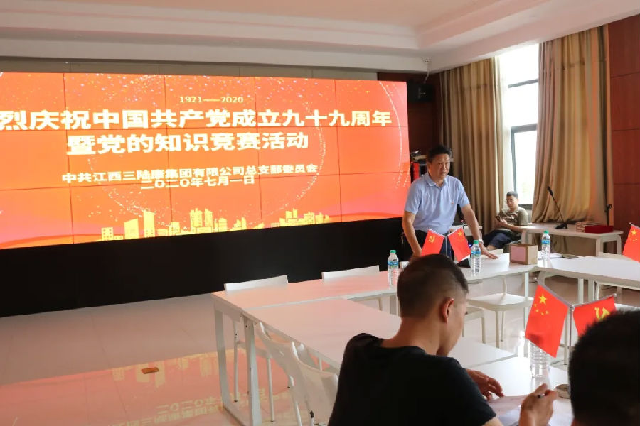 為紀(jì)念中國(guó)共產(chǎn)黨成立99周年,銘記黨的光輝歷程,切實(shí)增強(qiáng)全體黨員和入黨積極分子的政治意識(shí)、大局意識(shí)、核心意識(shí)、看齊意識(shí),7月1日下午,江西三陸康集團(tuán)有限公司黨總支在集團(tuán)二樓視頻會(huì)議室成功舉辦了一場(chǎng)黨的基本知識(shí)競(jìng)賽活動(dòng)。