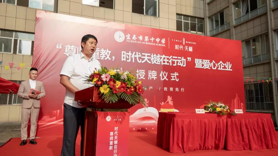 儀式開始前,宜春十中籌備組組長萬啟云代表校方向時代天樾項目領導及來賓致以熱烈的歡迎,并對企業的善舉表示感謝,他介紹了學校辦學以來的基本情況,學校的順利發展得到了社會各界的真誠關心與幫助,全體十中人定會將社會各界給予的關心與幫助化為力量,勠力同心,以百年大黨浸潤的信念品格,腳踏實地辦好宜春十中。