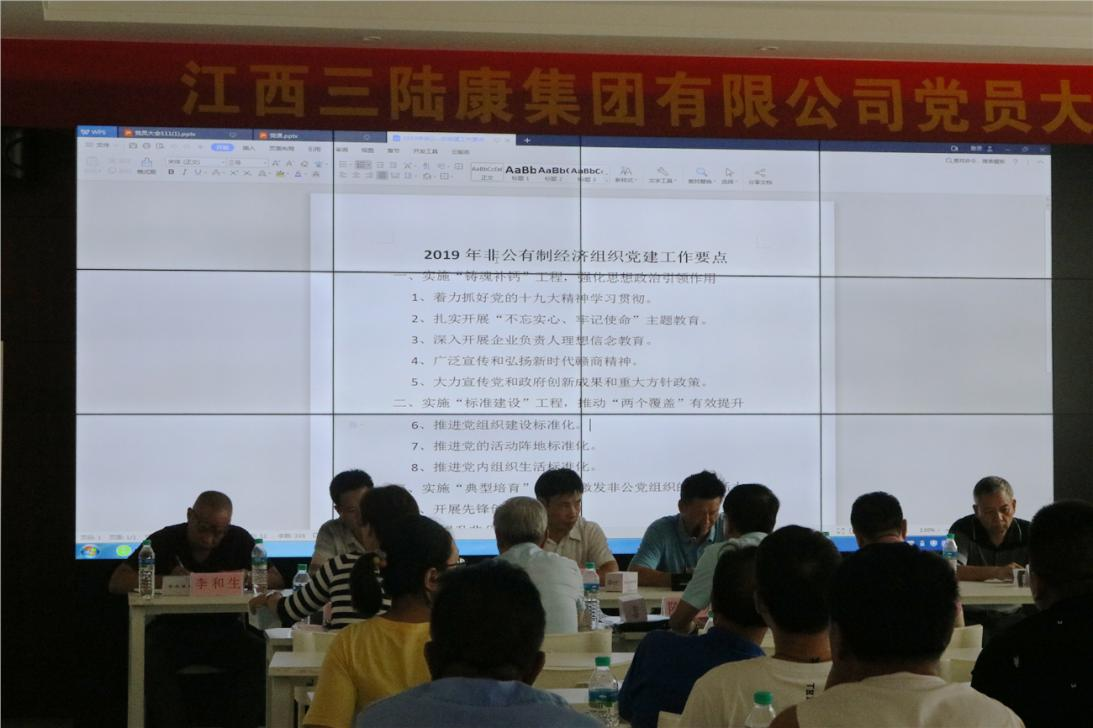 2019年8月12日,江西三陸康集團(tuán)有限公司全體黨員大會(huì)勝利召開,選舉成立黨總支部,產(chǎn)生首屆總支部委員會(huì)。